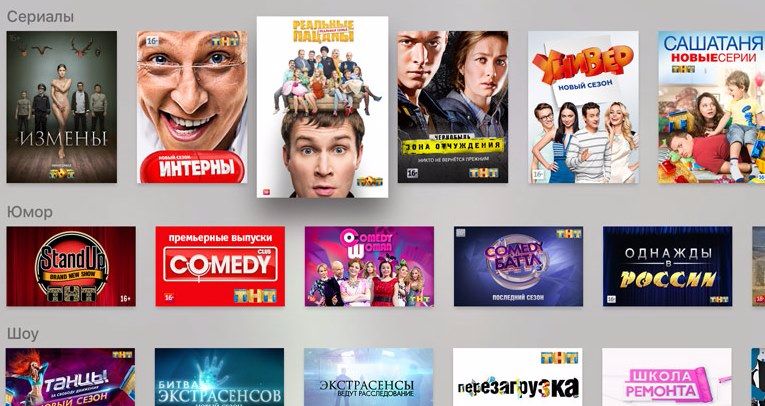 TNT and Apple TV viewers can easily get access to the quality content of the channel with the help of a new application. Users can watch free the best projects of TNT series Sweet life (Sladkaya zhizn), Chernobyl. Exclusion Zone, Law of stone jungle (Zakon kamennyh djunglei), Univer, True guys (Realnie patsany), Interny, Physics' fight (Bitva extrassensov), Dancing (Tantsy), Comedy Club, StandUp, Bachelor (Holostyak) and many others.