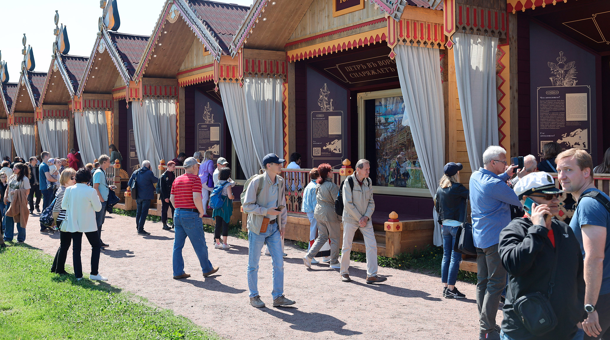 Одной из задач проекта «30 картин из жизни Петра Великого. 2022» является воссоздание среды городского праздника XIX века. Как и 150 лет назад, картины установлены в павильонах, стилизованных под крестьянские избы. Их архитектурный облик был воссоздан по сохранившимся эскизам и гравюрам. Погрузиться в атмосферу праздника 1872 года поможет VR-аттракцион: посетители своими глазами увидят Марсово поле в дни юбилейных торжеств 150 лет назад.