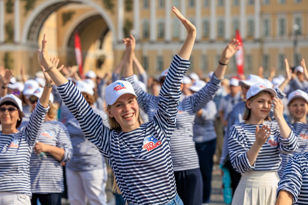 28 июля в центре Санкт-Петербурга прошел массовый танцевальный флешмоб от «Авторадио». В День военно-морского флота более 1 500 человек собрались на Дворцовой площади, чтобы исполнить любимый танец всех моряков – «Яблочко».