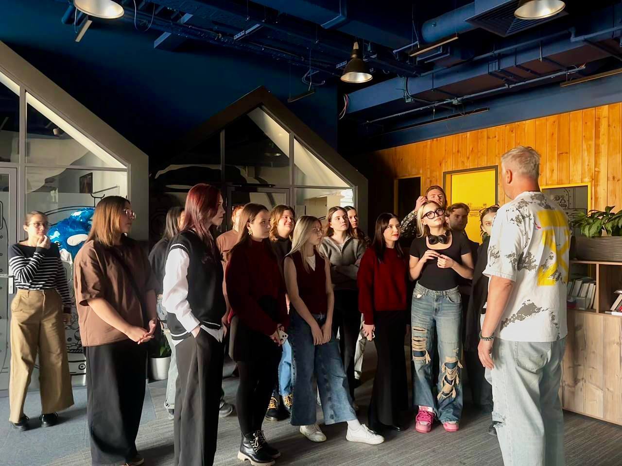 Креативный продюсер ГПМ КИТ Георгий Рюмин провел экскурсию по офису для первокурсников мастерской «Продюсирование» Института кино и телевидения.