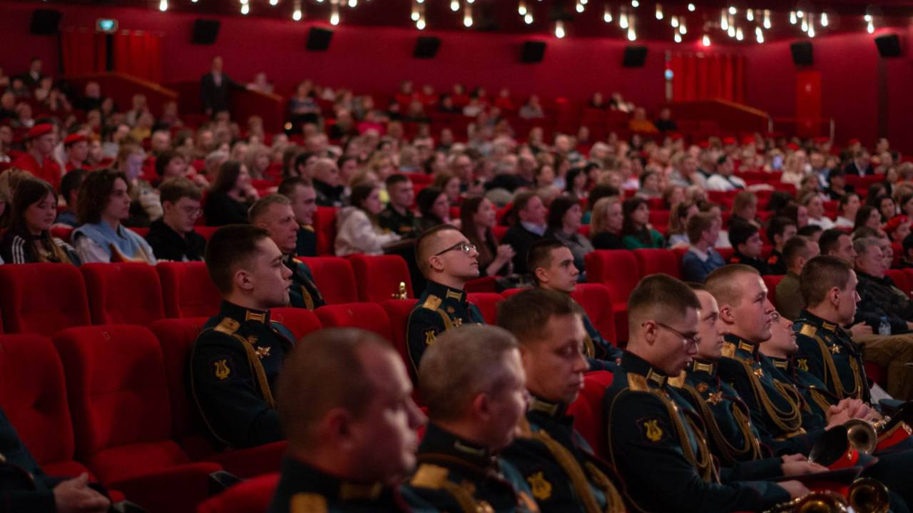 В главном зале кинотеатра собрались участники СВО, представители силовых структур, врачи военных госпиталей, юнармейцы, учащиеся военных учебных заведений, солдаты срочной службы, школьники. Организация мероприятия — часть образовательно-практического проекта «PROфнавигатор» и направления «PRO_Забота» корпоративной социальной ответственности Холдинга.