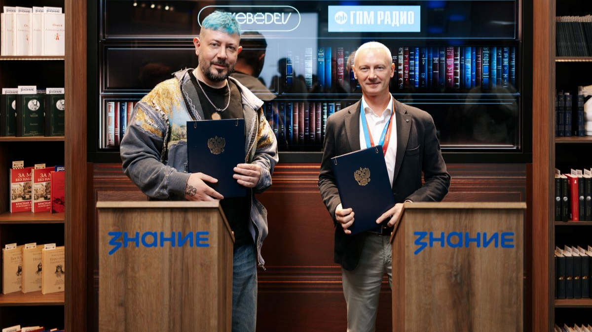Подписание прошло на совместном мультимедийном стенде Общества «Знание» и Российского военно-исторического общества в рамках ПМЭФ-2025.