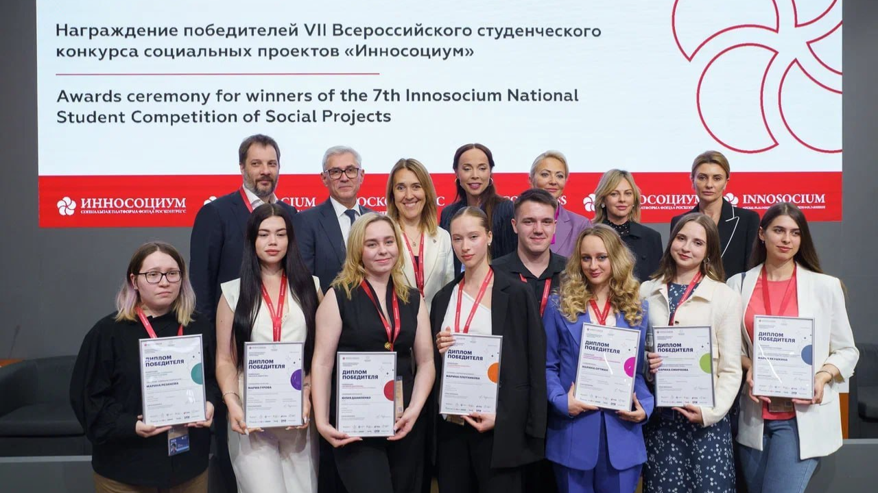 20 июня в рамках ПМЭФ-2025 в павильоне «Душа России» прошло награждение победителей VII Всероссийского студенческого конкурса социальных проектов «Инносоциум». Организатор конкурса - социокреативная платформа Фонда Росконгресс – Фонд Инносоциум.