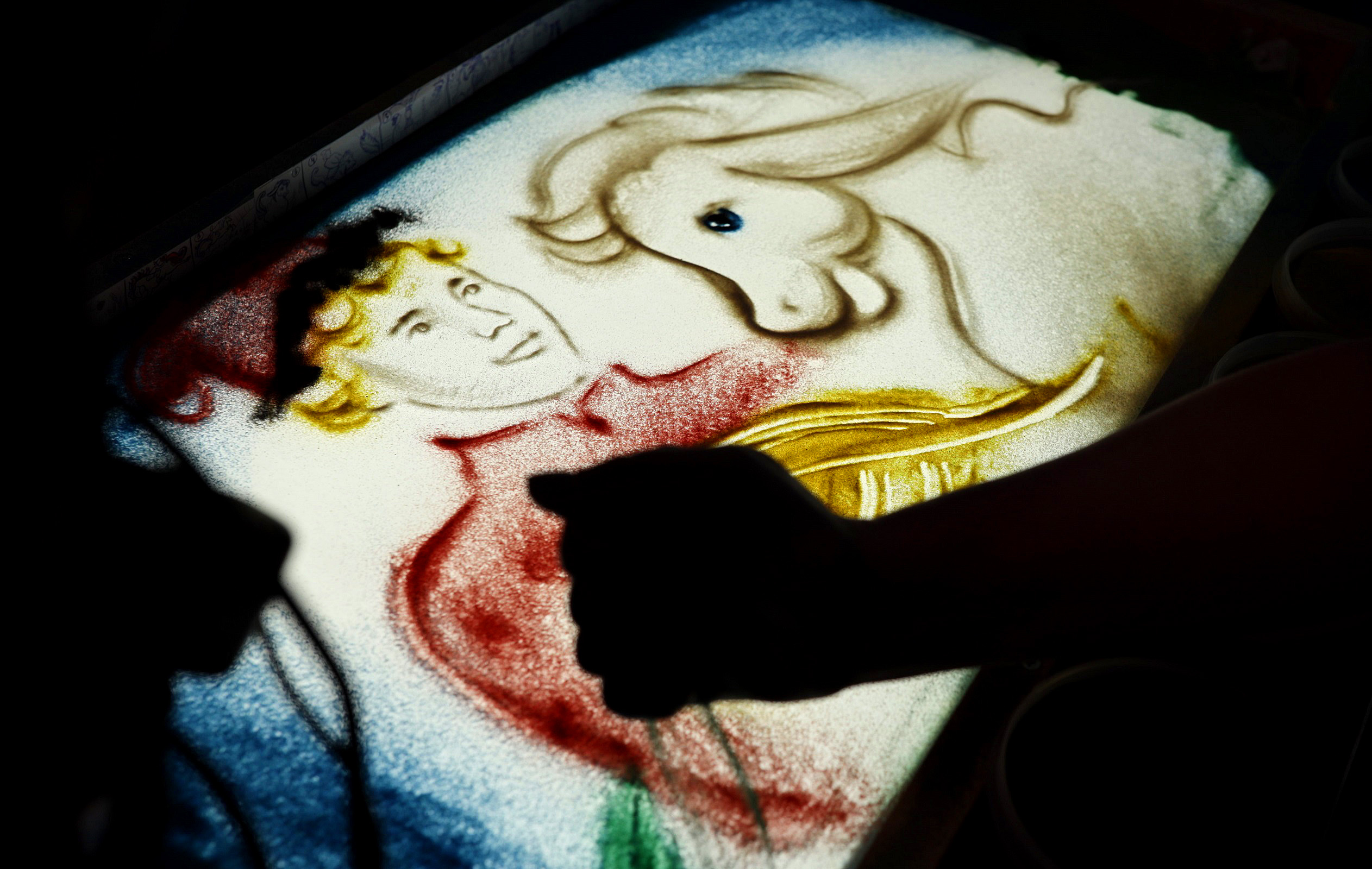 17 ноября юные посетители международной выставки-форума «Россия» совершили путешествие в мир сказок вместе с ведущими Детского радио. Главный почтальон радиостанции Дядя Саша и ведущая шоу «Развивайка» Катя Знайкина прочитали знаменитое произведение Петра Ершова «Конек-Горбунок». Повествование сопровождала песочная анимация. «Сыпучие» картины, которые создавали эффект волшебства и помогали еще лучше раскрыть сюжетную линию, представила художница Марина Сагулина.