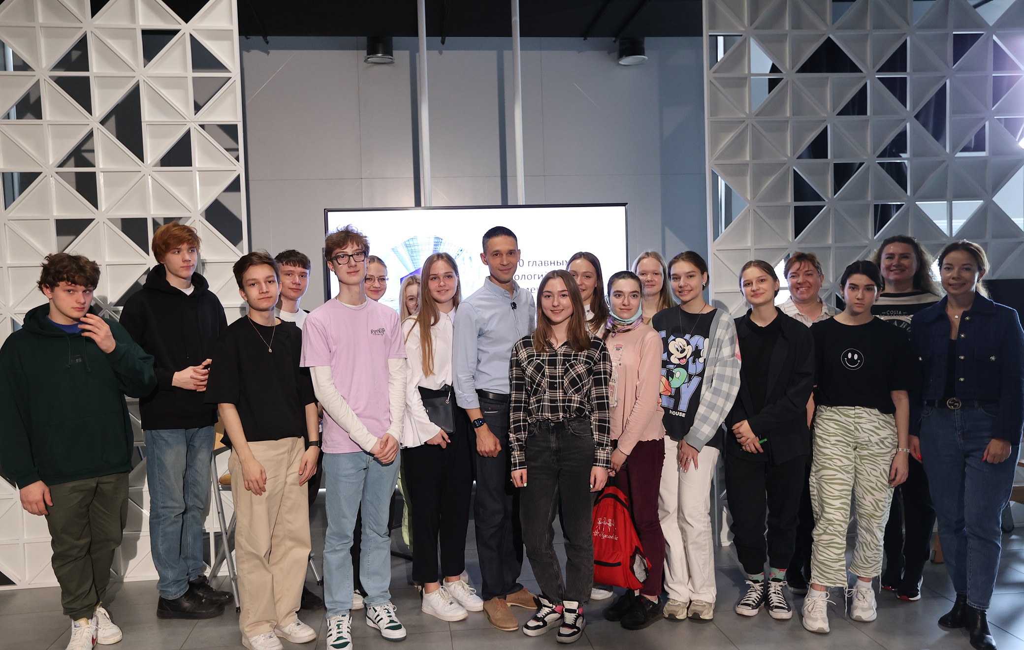 Известный телеведущий Сергей Малозёмов провёл для ребят увлекательный мастер-класс и рассказал им, какими гаджетами мы будем пользоваться в ближайшем будущем. В конце экскурсии школьники задали ведущему вопросы, приняли участие в викторине, сфотографировались в студии.