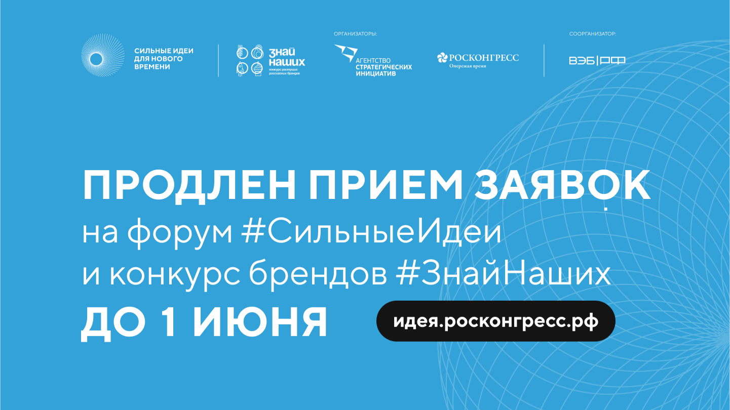 Прием заявок на форум «Сильные идеи для нового времени» и конкурс растущих российских брендов «Знай наших» продлили до 1 июня