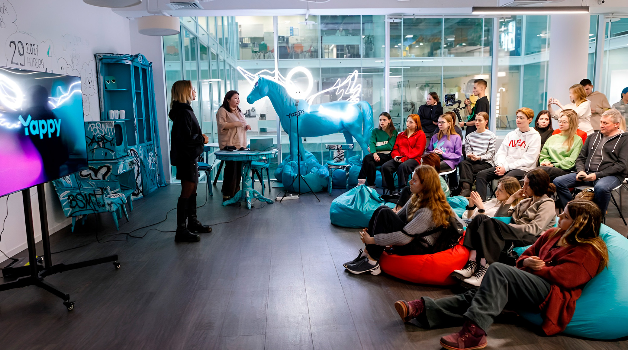 На первой встрече побывали участники проекта «Медиакласс в московской школе», который помогает столичным старшеклассникам познакомиться с будущей специальностью. В офисе Yappy ученики медиаклассов встретились с командой проекта - создателями приложения, QA-инженерами и маркетологами, чтобы узнать больше о создании и развитии мобильного приложения, а также необходимых компетенциях.